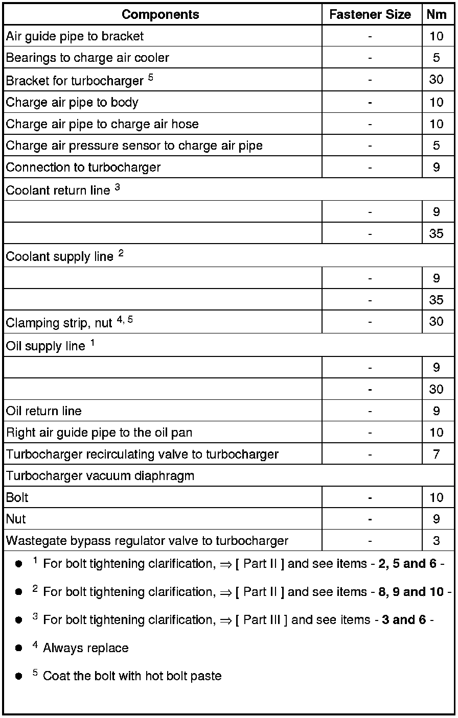 - Tighten the nuts - 1 through 5 - in 4 steps as follows: