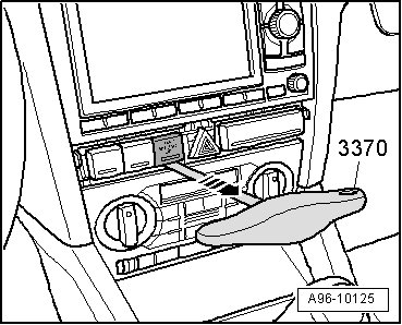 - Carefully remove the front passenger airbag -disabled- indicator lamp (K145) using the (3370) from the switch mount - arrow -.