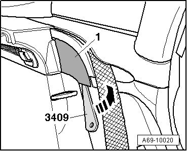 - Press securing flap - 2 - in - direction of arrow - and disconnect electrical connector - 3 - on side airbag.