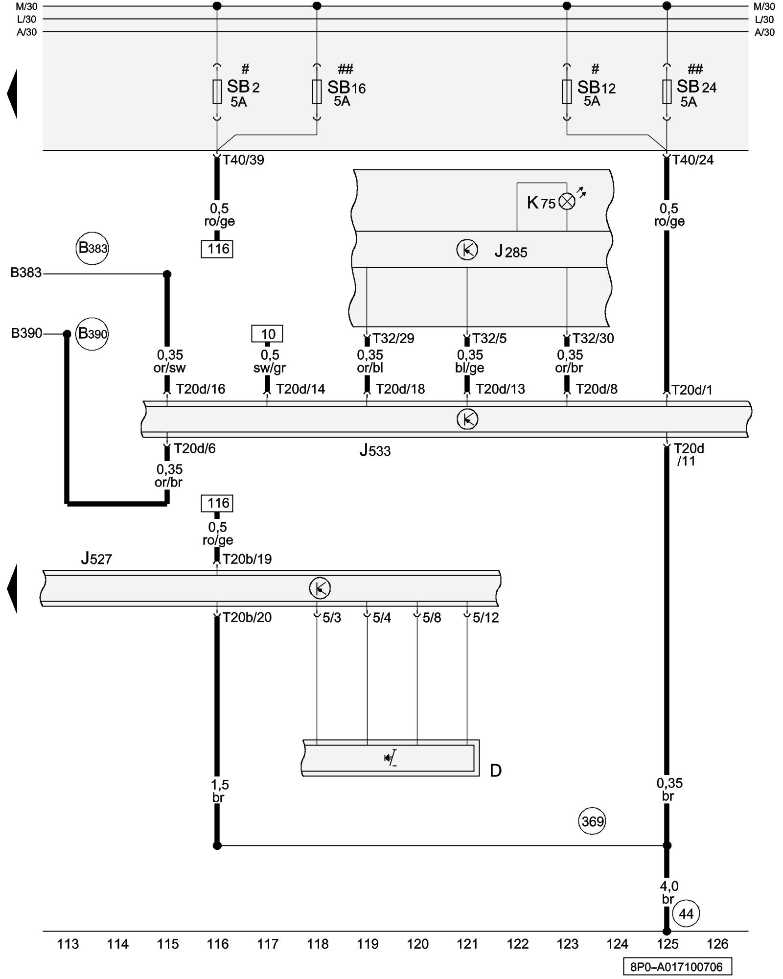J533 - Data Bus On Board Diagnostic Interface Control Modules in Interior Of Vehicle