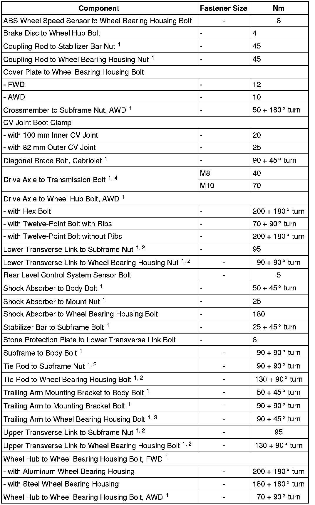 • 2 Always tighten threaded connections in curb weight position. Refer to => [ Rear Suspension, Lifting to Curb Weight Position ] Rear Suspension, Lifting to Curb Weight Position.