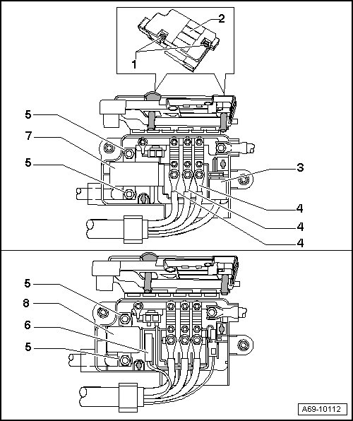 - Remove nuts - 5 - and remove Battery Interrupt Igniter (N253) - 8 -.