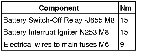 Battery Switch-Off Relay (J655) disconnects the circuit electrically. The Battery Switch-Off Relay (J655) must always be replaced after a deployment.