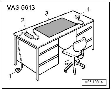 - Place the electro-static discharge mat - 3 - from (VAS 6613) on a clean, dry table.