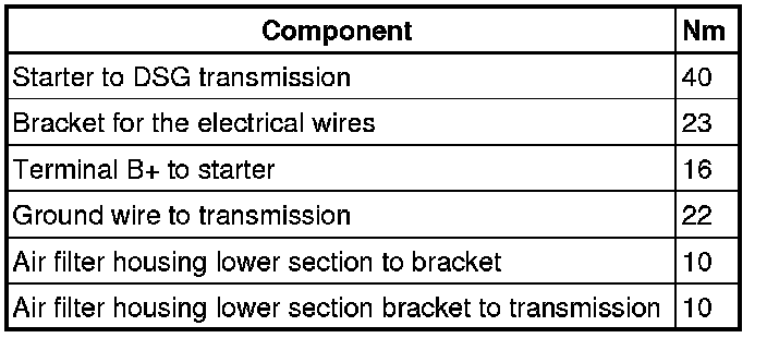 - Remove the lower screw on the starter (accessible from the top) by using a 3/8 inch socket, 16 mm.