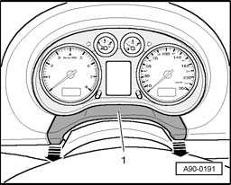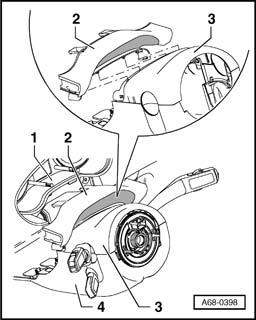- Carefully pry gap cover - 2 - from upper steering column trim - 3 - using a small flathead screwdriver.