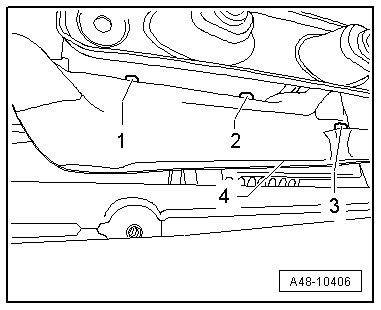 - Remove the bolts - 2 and 3 - and push the heat shield - 4 - slightly upward.