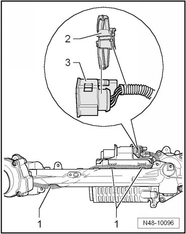 Tightening specifications, refer to => [ Steering Gear Overview, Generation I ] Steering Gear Overview, Generation I.
