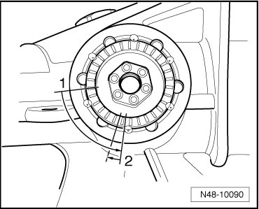 - Remove thrust piece from steering gear housing, for example with (1847-2).