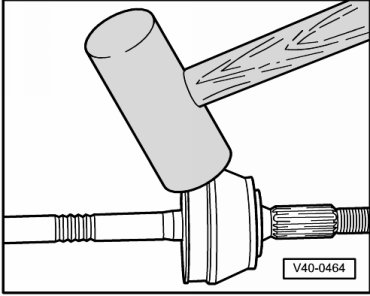 - Remove the CV joint from the drive axle by hitting it with a light alloy hammer.