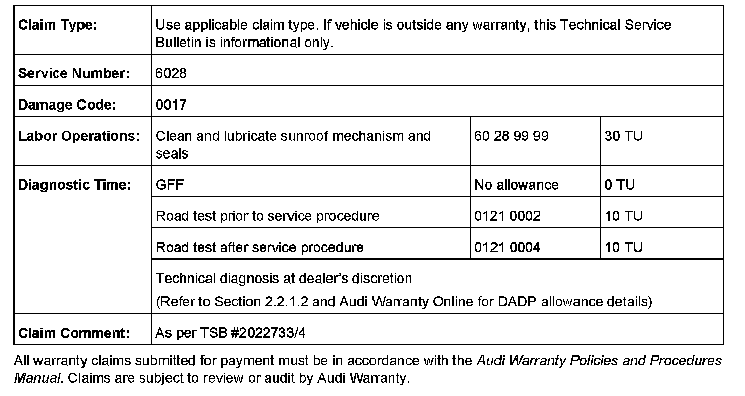 Over time the lubrication in the sunroof mechanism and seals degrades due to exposure to heat, moisture, and regular use. In order to maintain optimal sunroof operation, regular lubrication maintenance must be performed.