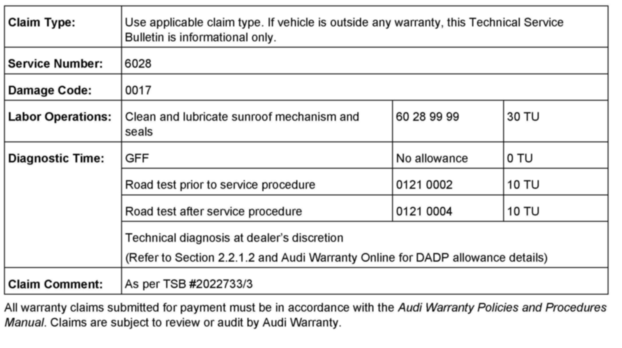 Body - Various Sunroof Noise Issues/Concerns: Overview