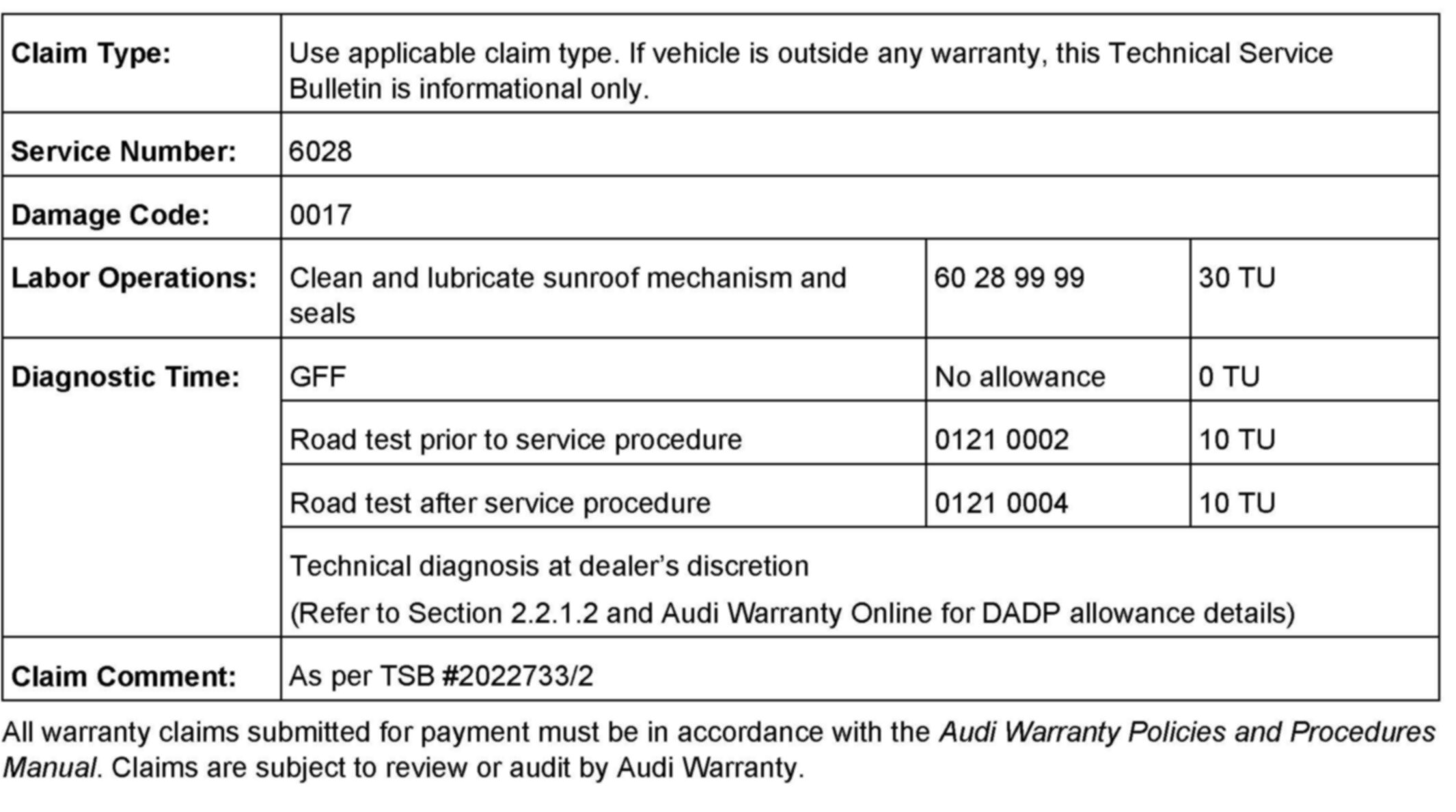 Over time the lubrication in the sunroof mechanism and seals degrades due to exposure to heat, moisture, and regular use. In order to maintain optimal sunroof operation, regular lubrication maintenance must be performed.