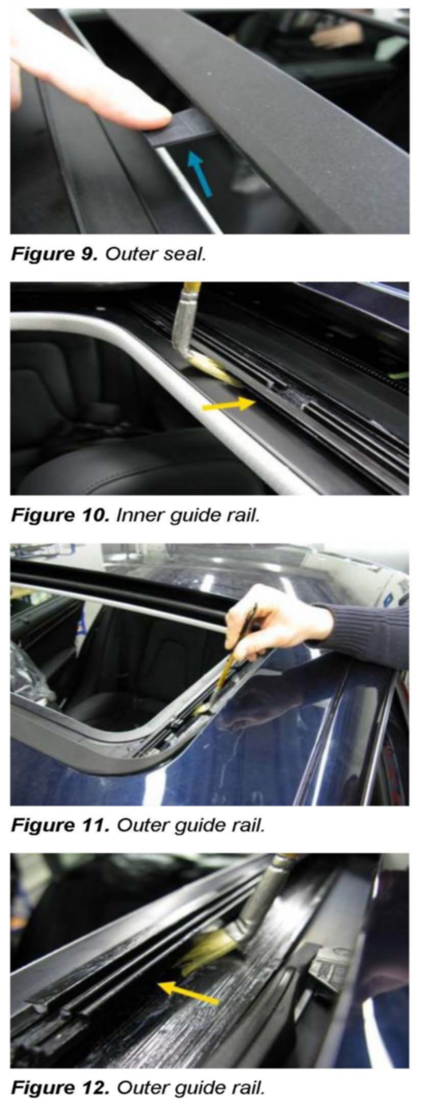 Over time the lubrication in the sunroof mechanism and seals degrades due to exposure to heat, moisture, and regular use. In order to maintain optimal sunroof operation, regular lubrication maintenance must be performed.