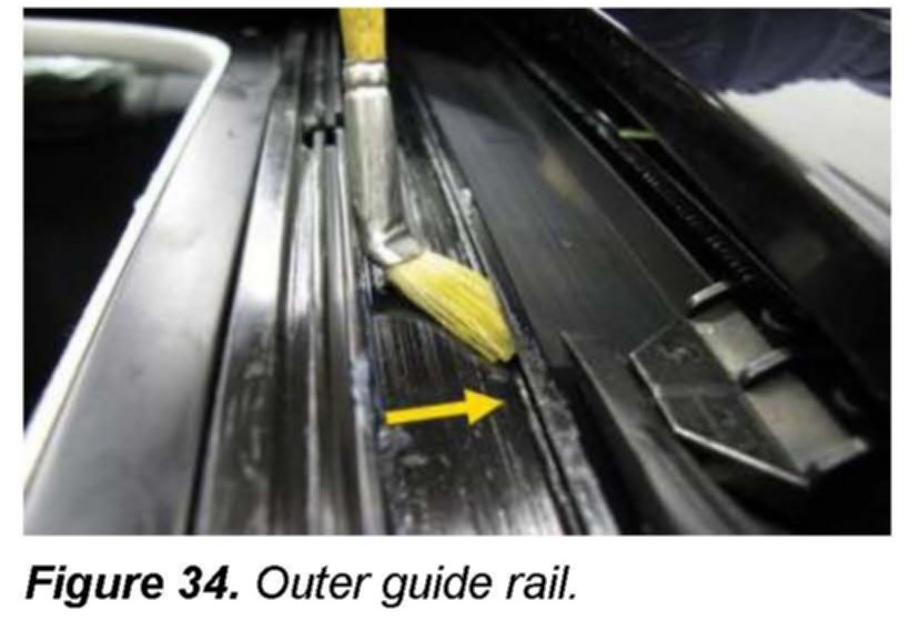1. Before lubricating, thoroughly clean the seals and the guide rails with a dry cloth.