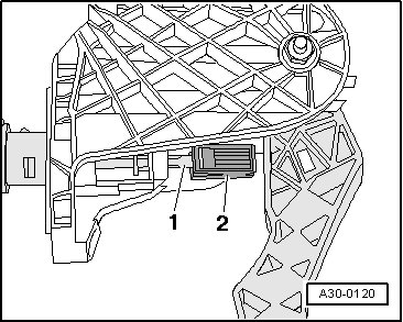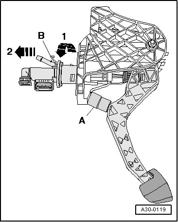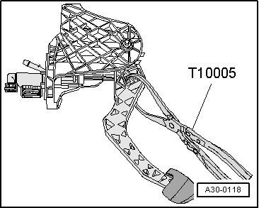 - Place a spacer - A - between the clutch pedal and the stop and press the clutch pedal forward.