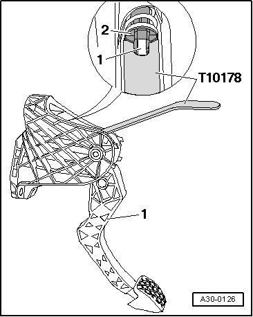 - Remove clutch pedal - 1 - from mounting bracket - 3 -, remove nut - 2 - and pull out bolt - 5 - to do so.
