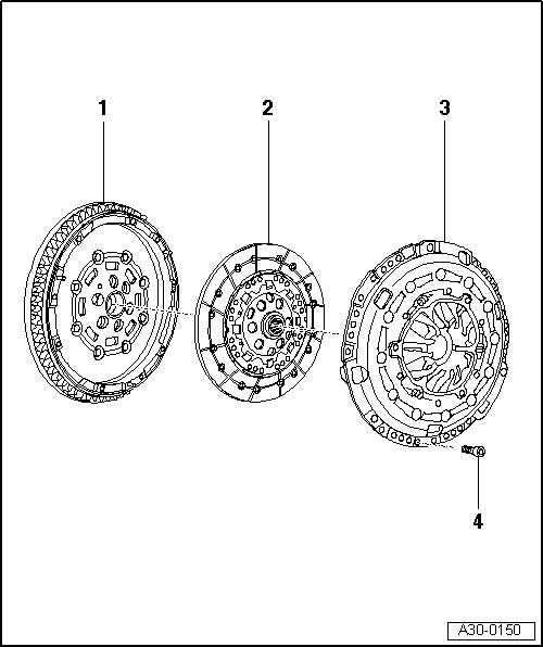 • Dual-mass flywheel, pressure plate and clutch plate are allocated to each other and must not be mixed with other manufacturer's components.