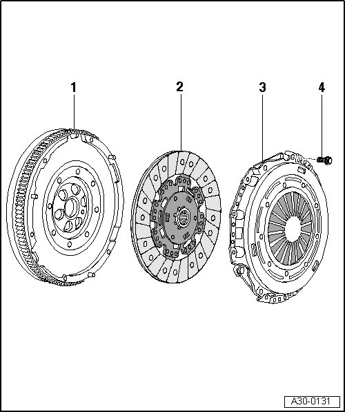 • Dual-mass flywheel, pressure plate and clutch plate are allocated to each other and must not be mixed with other manufacturer's components.
