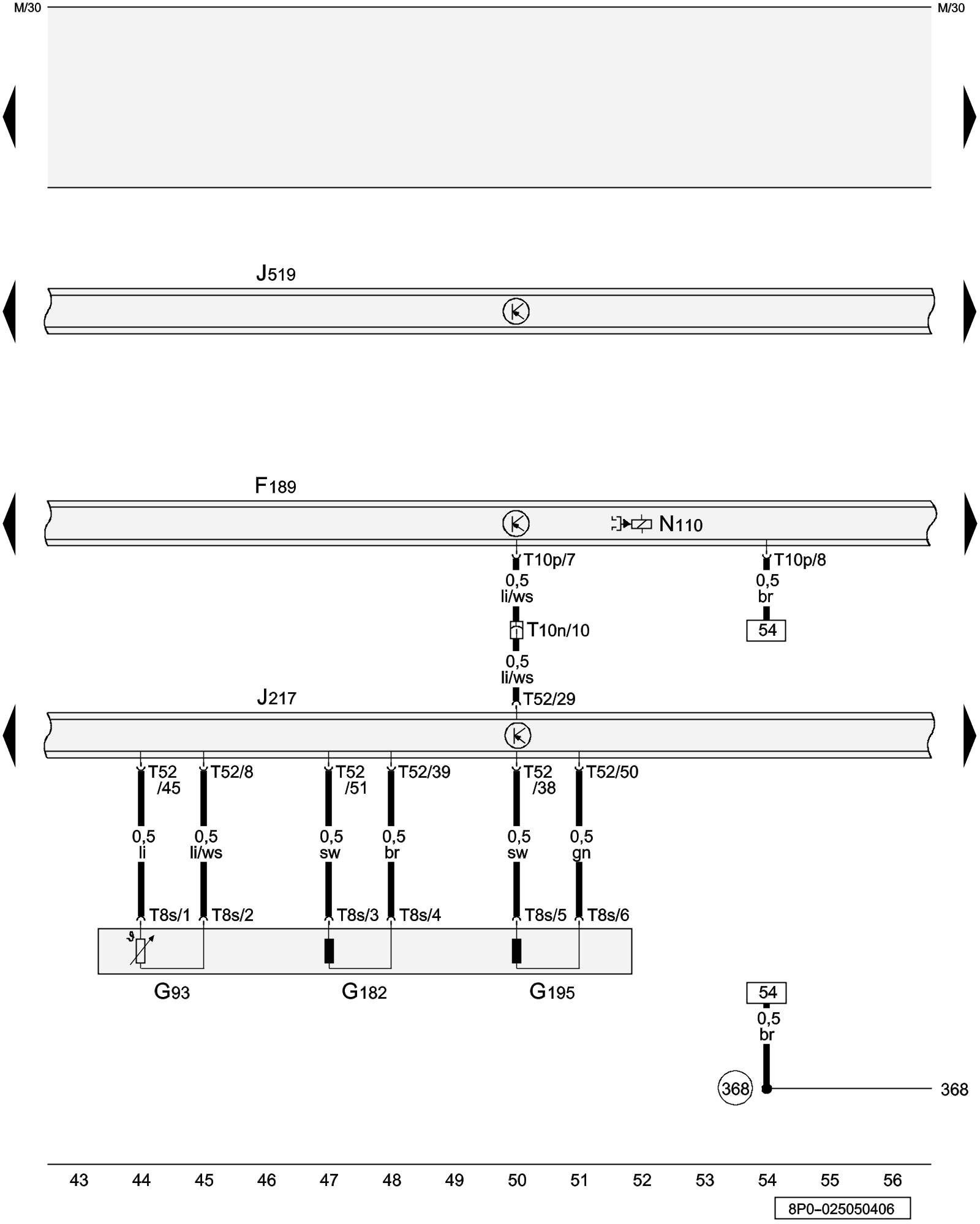 F189 - Tiptronic Switch Direct Shift Gearbox 02E (DSG) Tiptronic Switch -F189- / Selector Lever Park Position Lock Switch -F319- / Shiftlock Solenoid -N110-