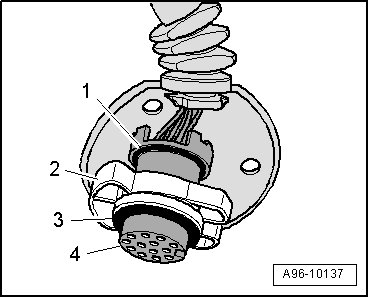 - Press multi-pin connector - 2 - in - direction of arrow - out of socket - 1 -.