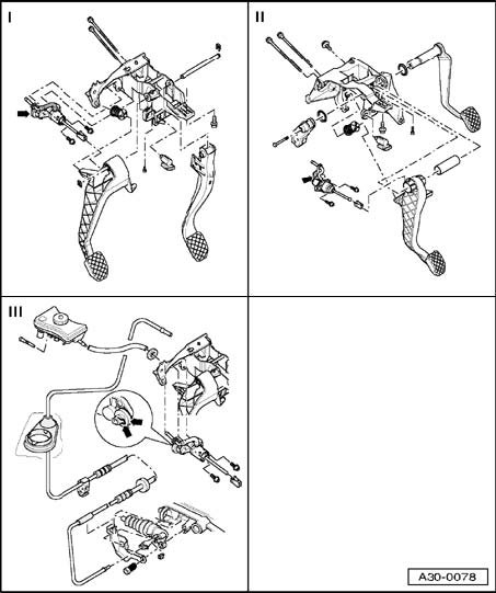 ^ Make sure that no brake fluid escapes into the footwell, the plenum chamber or onto the transmission below. If this does happen, clean the affected area thoroughly.