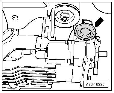 - Install the sealing cap - arrow - with the new O-ring and tighten. Tightening specification => [ (Item 6) Cover ] Haldex-Clutch (Generation Haldex II), Rear Final Drive 02D/0AV Overview.