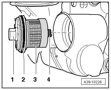 - Insert the spring - 4 - into the oil filter - 3 -.