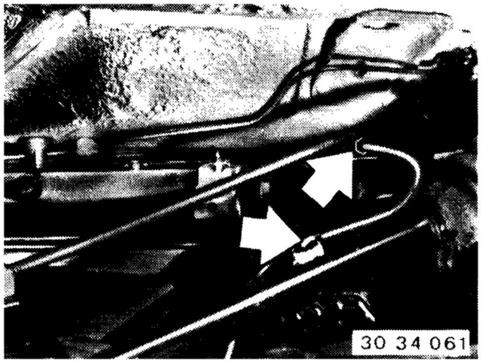 - Draw off brake fluid in tank with a syringe used exclusively with brake fluids.- Disconnect brake hose.