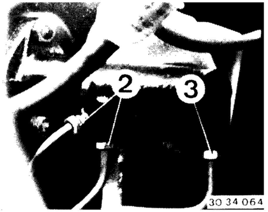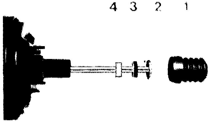 - If filter screen in brake booster is clogged with dirt, remove cap (1), holder (2), damper (3) and filter (4).