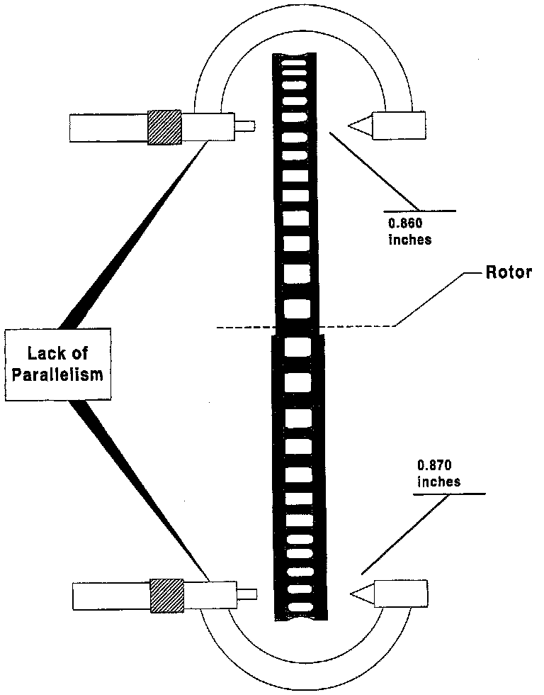 - Excessive lateral runout (warpage) or lack of parallelism (rotor thickness variation).