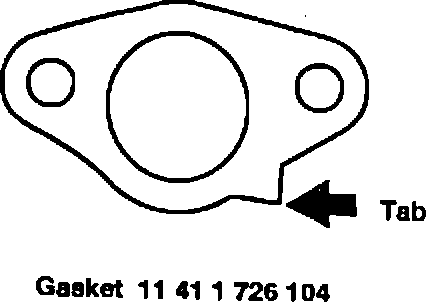 - gasket between the oil pick-up and the oil pump housing is seated properly. The installation of the gasket is directional. The latest version gasket with tab (P/N 11 41 726 104 - see illustration) should be installed with the tab on the gasket facing the rear of the engine as outlined in the Repair Manual, Group 11, page 11-50/19.