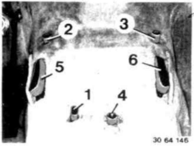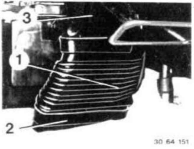 - Remove connector (1) between heater (3) and rear area heater duct (2) on left and right sides.