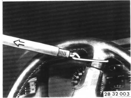 - Pull steering wheel against final left lock with a force 100 N (22 lbs.) about 5 seconds; use a force meter.