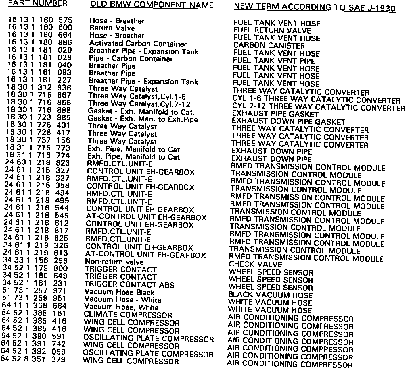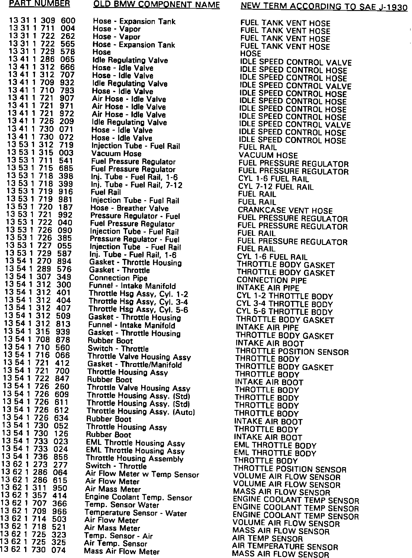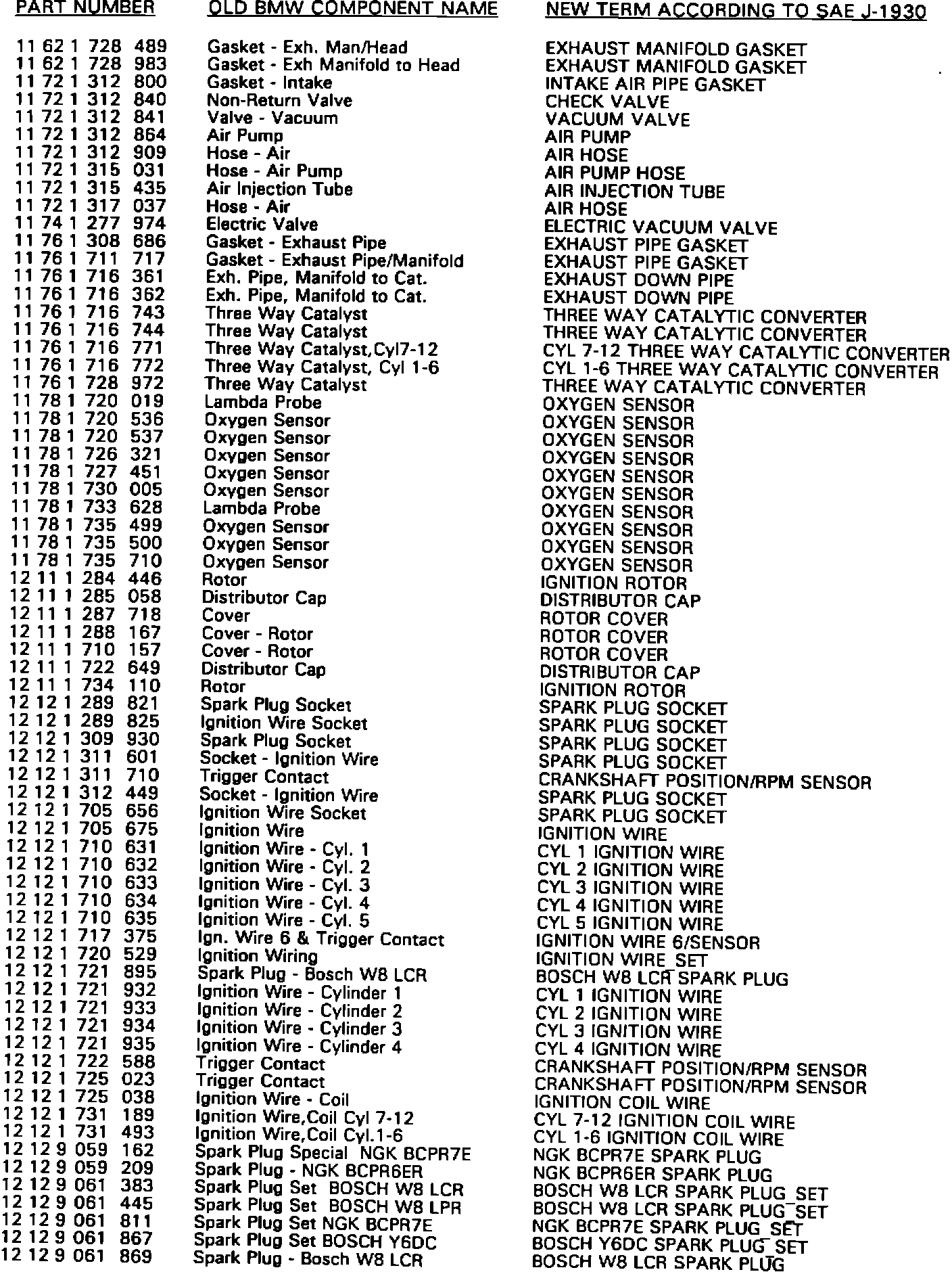 Starting with the release of this Service Information, BMW service literature will begin to use terminology according to SAE J-1930.