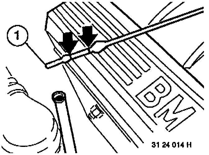- Oil level should not be below ball (1) after a test drive and with a transmission oil temperature of approx. 40°C (105°F).