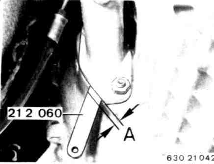 With a gap (A) of 5 mm (0.197 in) between gauge 21 2 060 and the slave cylinder, the clutch disc is worn and must be replaced.