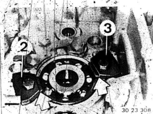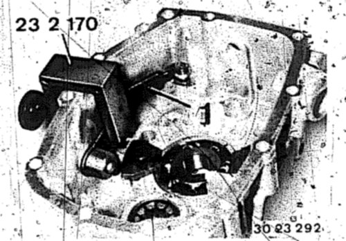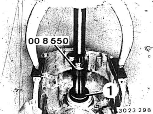 Pull out bearing outer race (1) with Special Tools 00 8 550 and a support