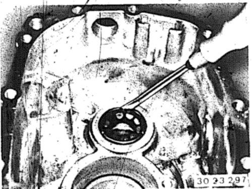Pull out bearing outer race (1) with Special Tools 00 8 550