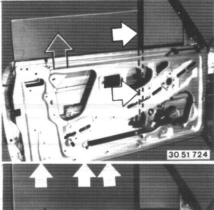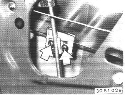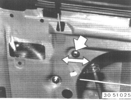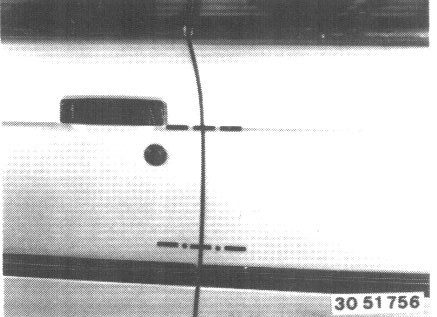 b) If necessary, correct door outside panel in area of rear side panel by adjusting the door striker.