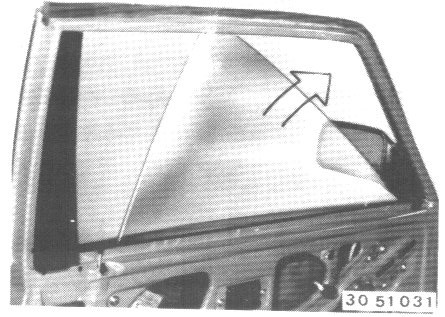 Insert window glass at inclirsation - turn slightly - and slide down parallel.
