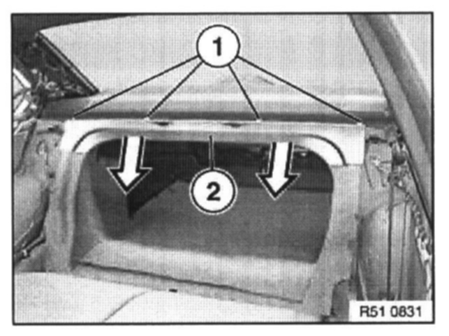 NOTE: The operation "Removing trim panel for oddments tray (back shelf)" ends here.
