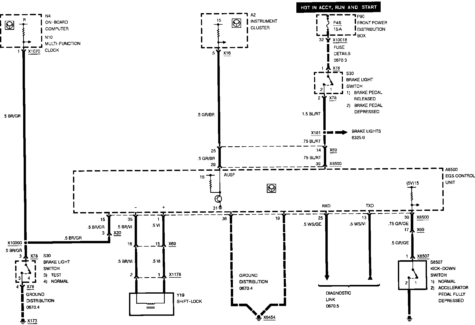 Electronic Transmission Control (EGS A4S 310R): Shift Lock, Diagnostic Link And Kick-Down Switch: