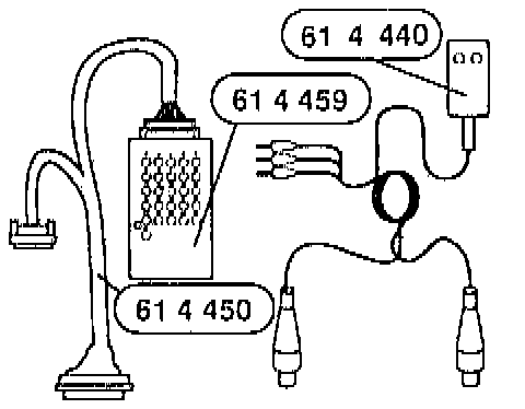 - Connect plug (1) on test box 61 1 459 with help of adapter 61 4 450.