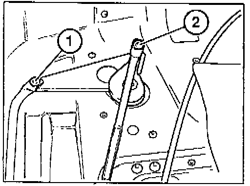 - - If electric operation is not possible, press top in storage box completely and press out push rod (2) firmly. Check top adjustment.