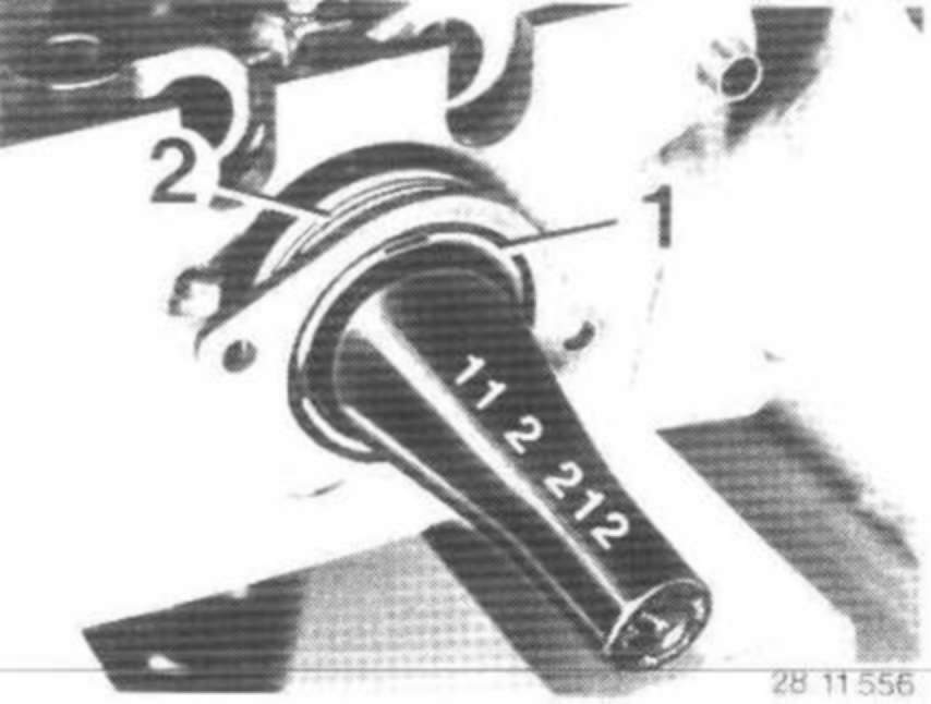 Check radial oil seal (1) and round cord seal (2), replacing if necessary.