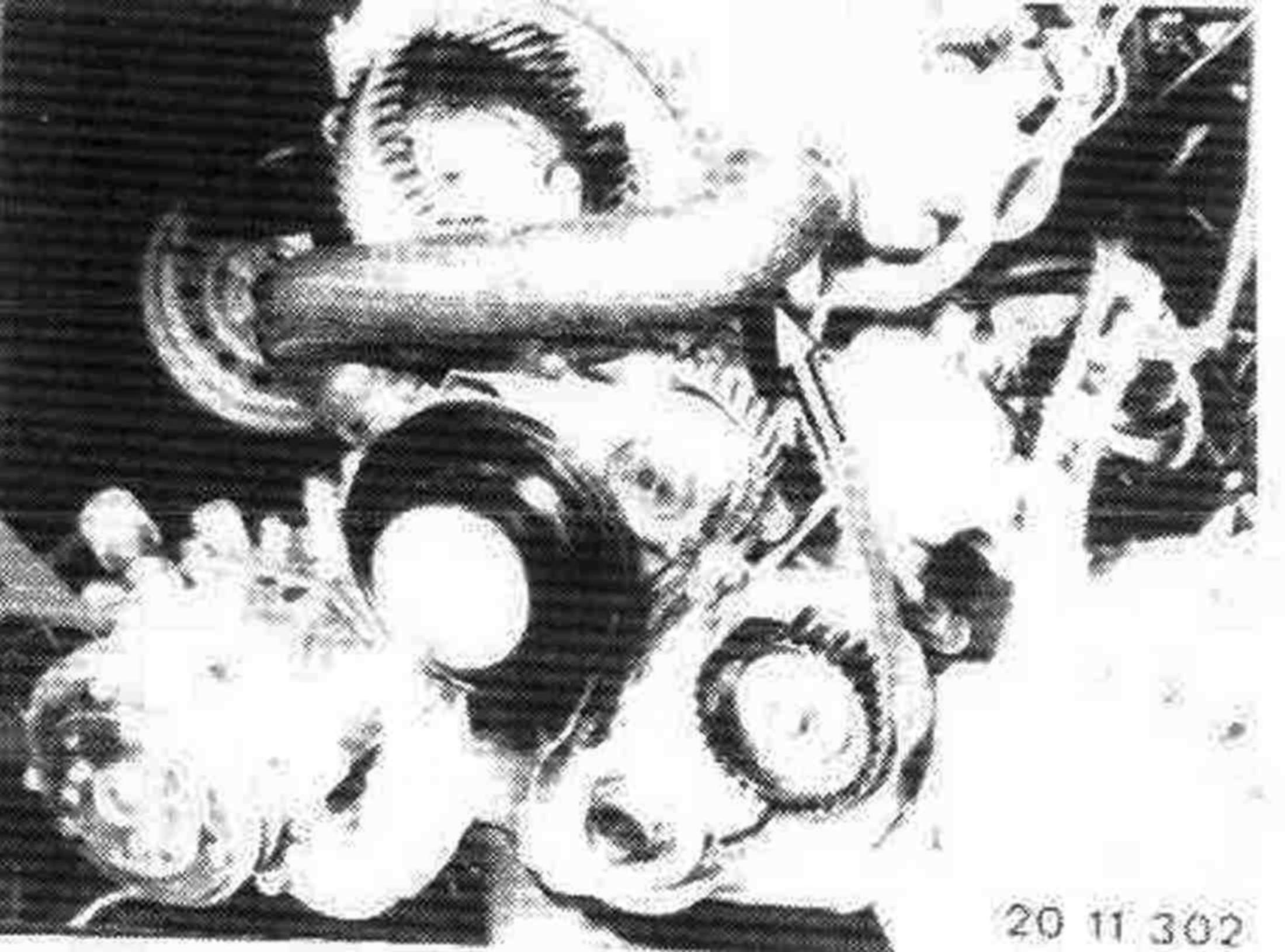 Install toothed drive belt in opposite direction of engine rotation, starting on the crankshaft sprocket
