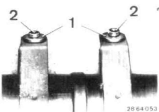 - Check rubber mounts (1), replacing if necessary. Don't forget spacers (2).