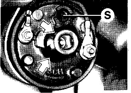 6. Check tightness of plug (S), if pressed out, replace the ignition coil.