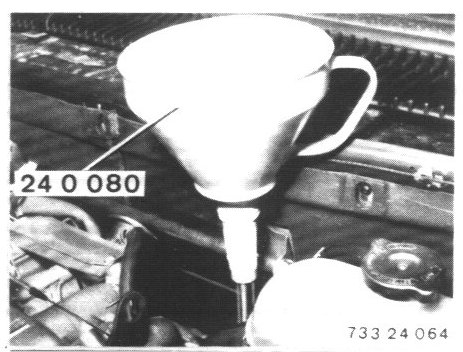 - Only pour in transmission oil with Special Tool 24 00 80 (funnel),